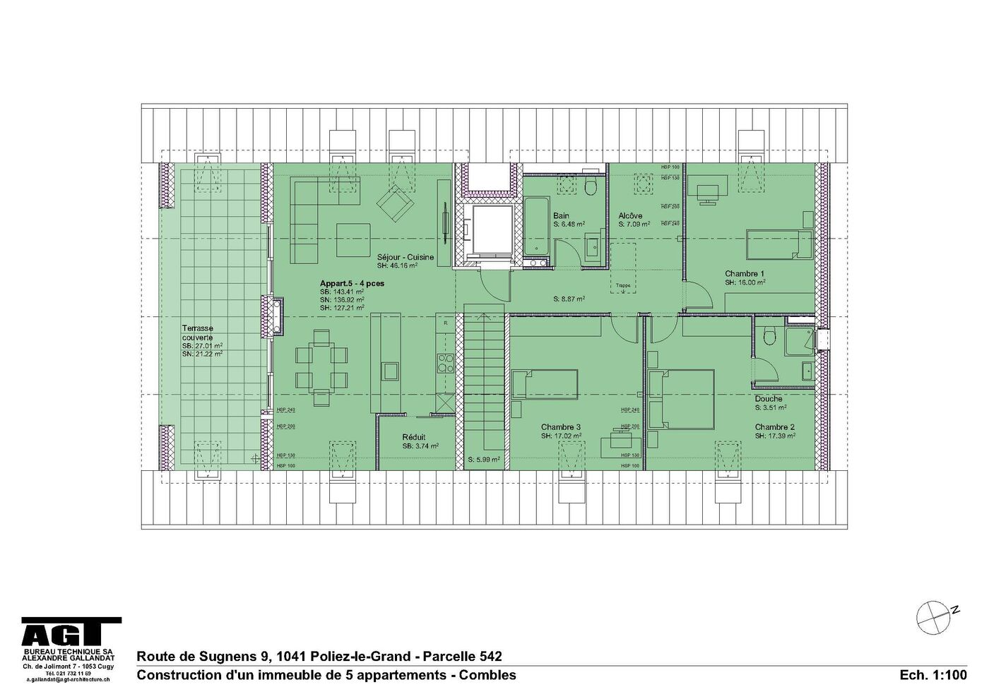 Lot 5 attique 41/2 pièces 1'070'000+ couvert à voiture 25'000 et place extérieure 15'000 Total 1'110’000